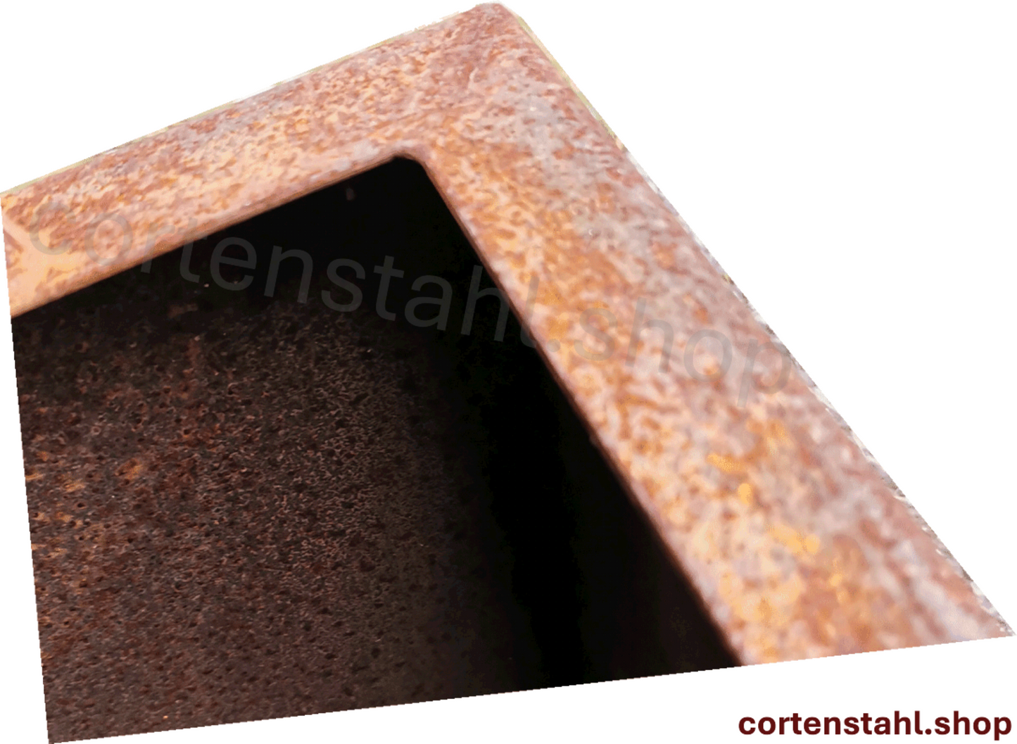 Cortenstahl (Werkstoff-Nr. 1.8965 oder 1.8945, EN 10027-1: S 355J2W) Cortenstahl bildet auf der Oberfläche durch Bewitterung unter der eigentlichen Rostschicht eine besonders dichte Sperrschicht aus festhaftenden Sulfaten oder Phosphaten aus, die das Stahlteil vor weiterer Korrosion schützt. Kein Durchrosten