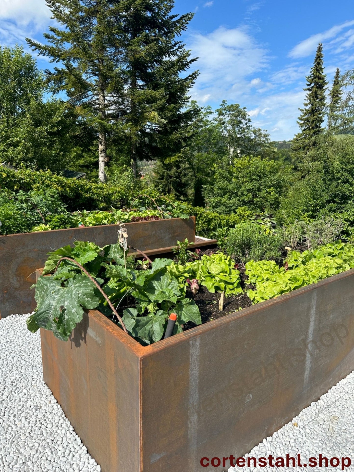 Mit einer Kantung von 50mm x 30mm oben und unten und der Wartungsfreiheit dank Cortenstahl bieten unsere Hochbeete eine lange Lebensdauer und halten zudem Schnecken fern.